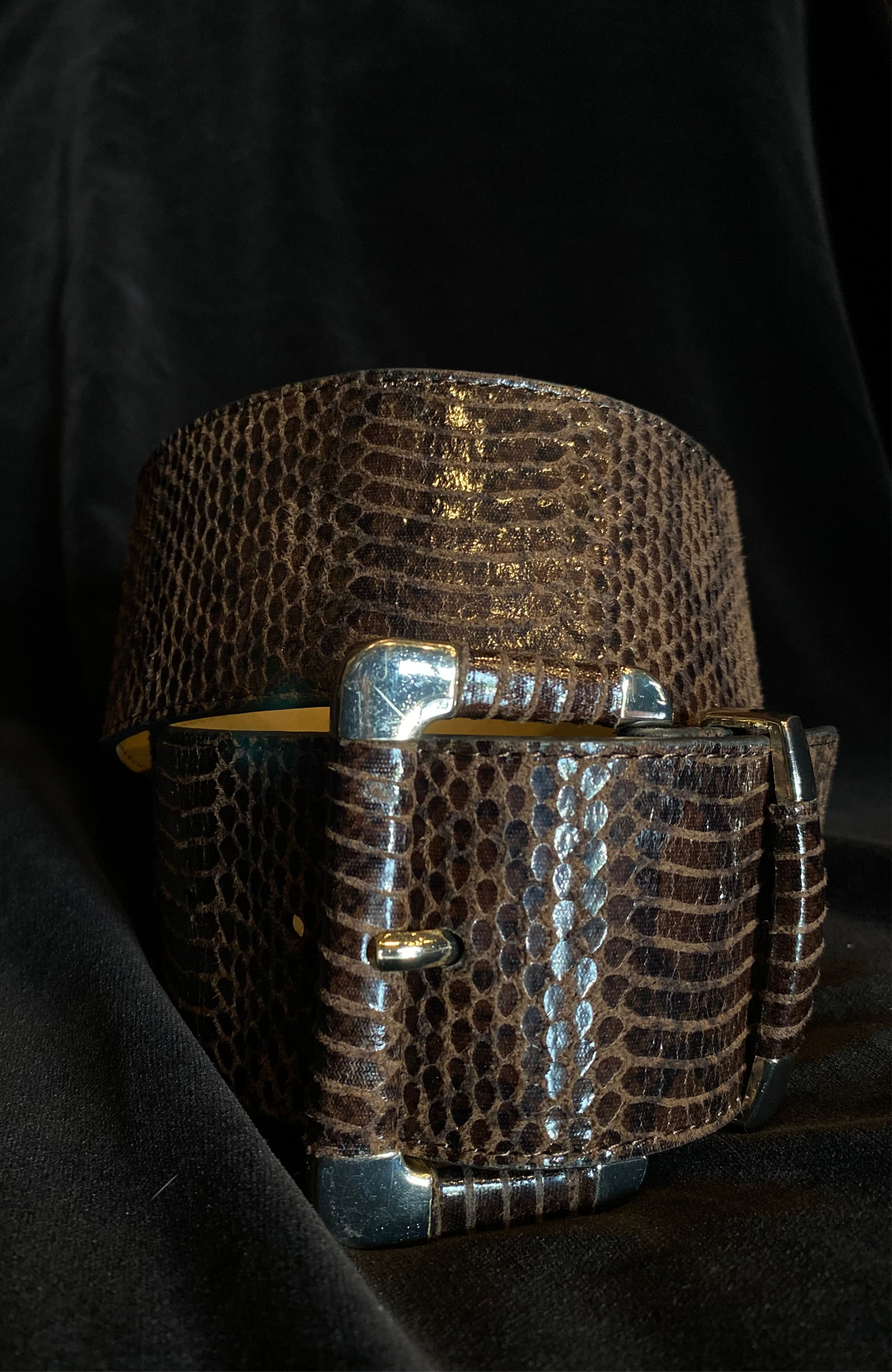 Faux Brown Snake Skin Waist Belt