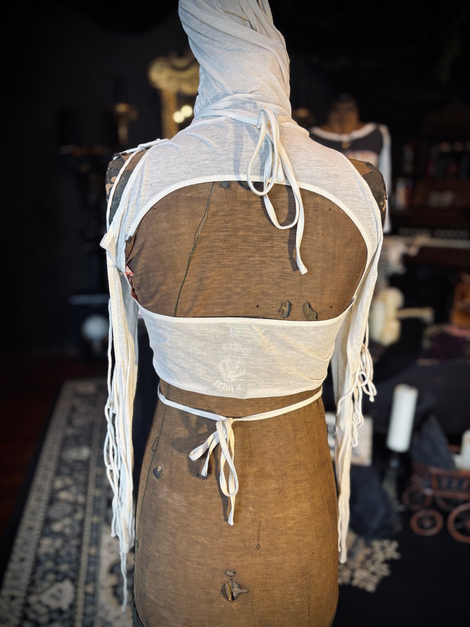 CLUBEXX Strappy white long sleeve hooded top