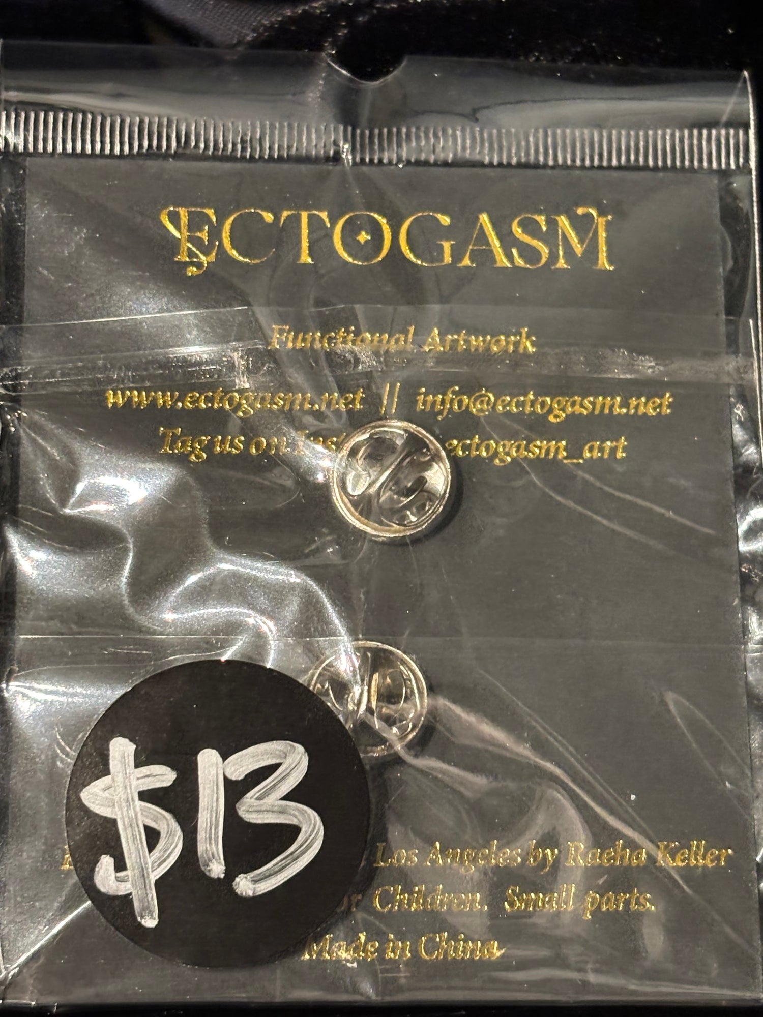 “Soft enamel pin measures 1.47" x 1" (37mm x 26mm). Will not fall off or spin around. Double clasps lock this pin in place. Collector's item with artist's signature stamped on the back. Free US shipping. Pandemics, global warming, corrupt governments, the condition of your bank account; with so many world enders to ignore, this is truly the pin for us all! Features the earth on fire with the quote, "This is FINE!" Wear it while you can.”-Ectogasm Website