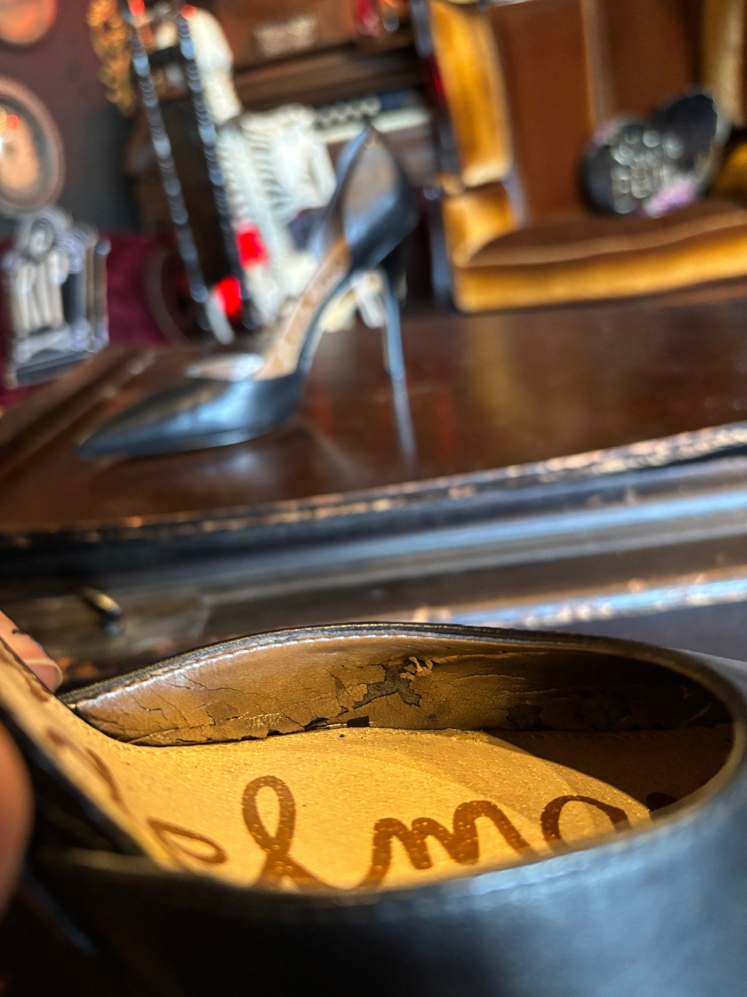 These are soooooo elegant the high heel is somewhere between a kitten heal and a high ass heel a good first step into the work of stilettos. Plus the little snakeskin on the ankle is sooooo cunt.
