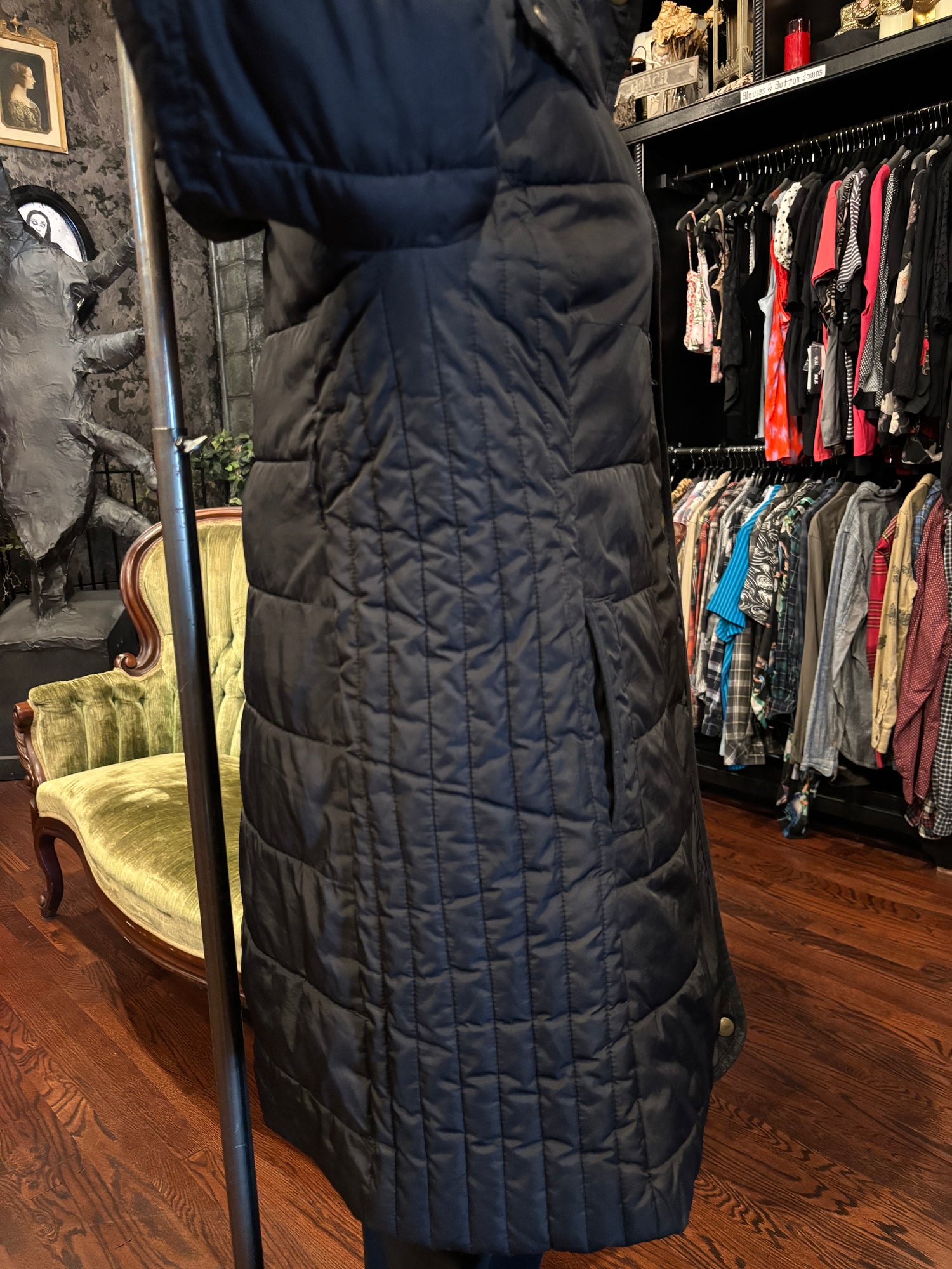 Black and Faux Fur Trim Hooded Puffer Parka Coat