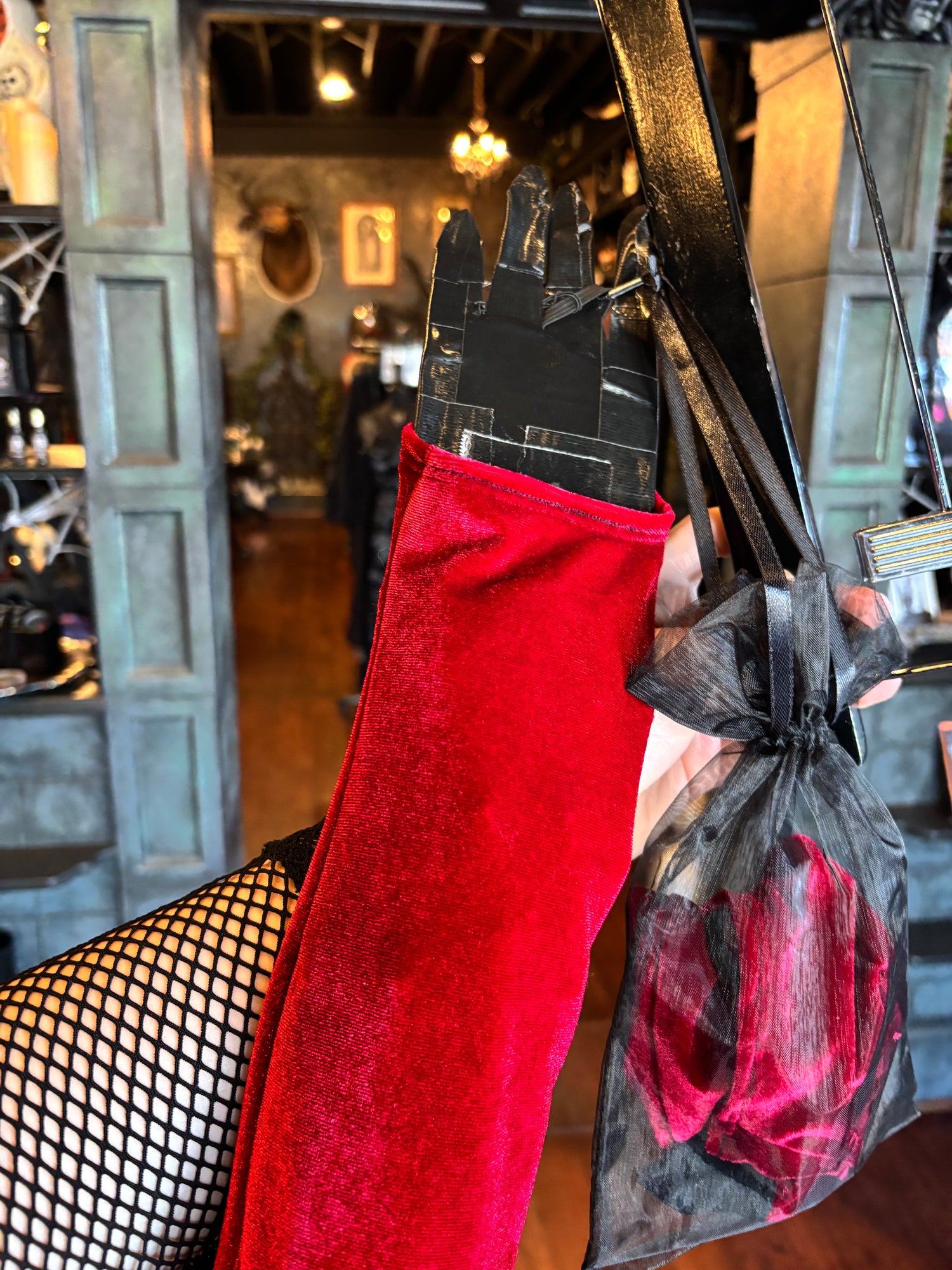 Grave Details Hand Made Pair of Fingerless Opera Gloves RED