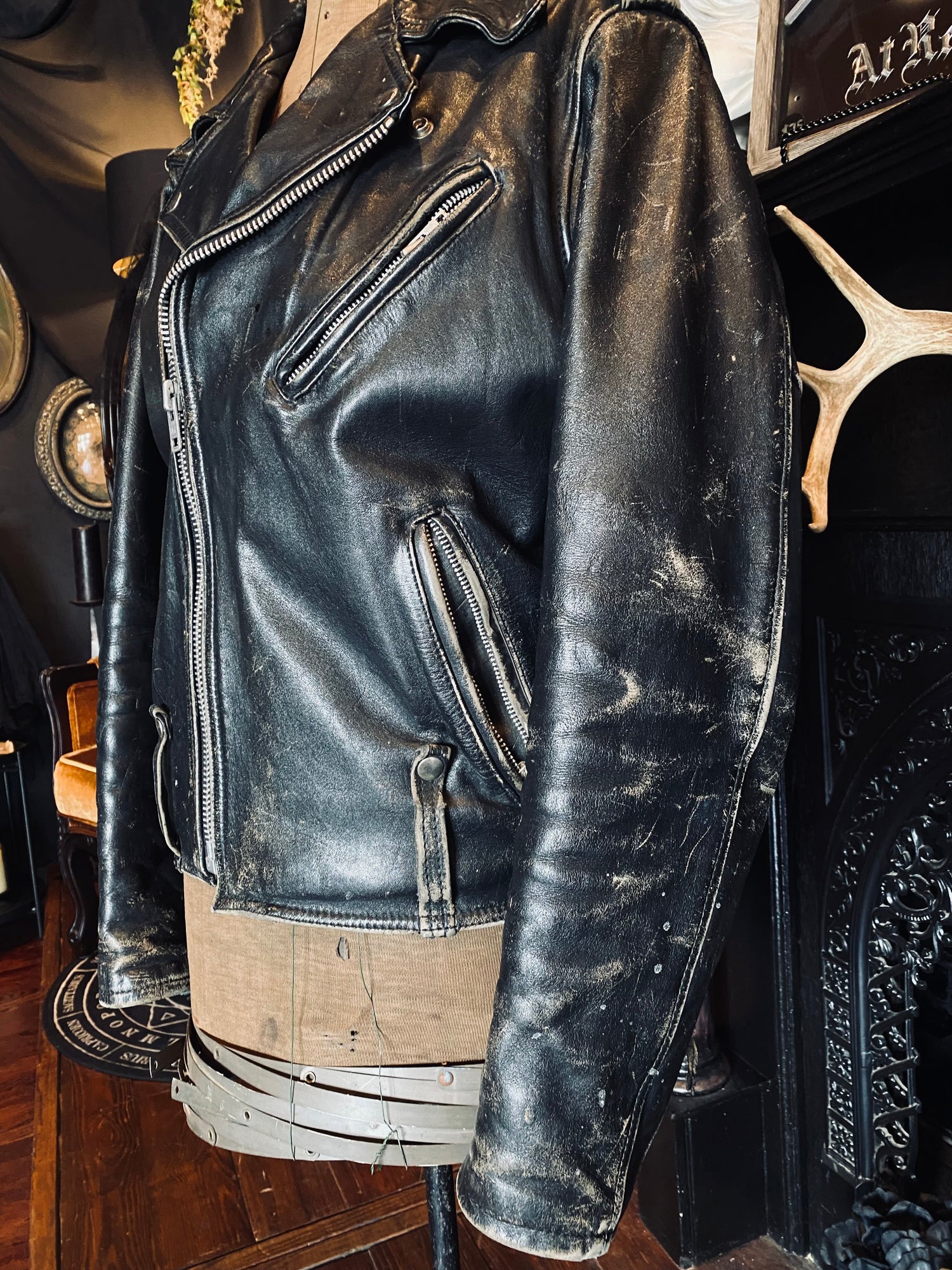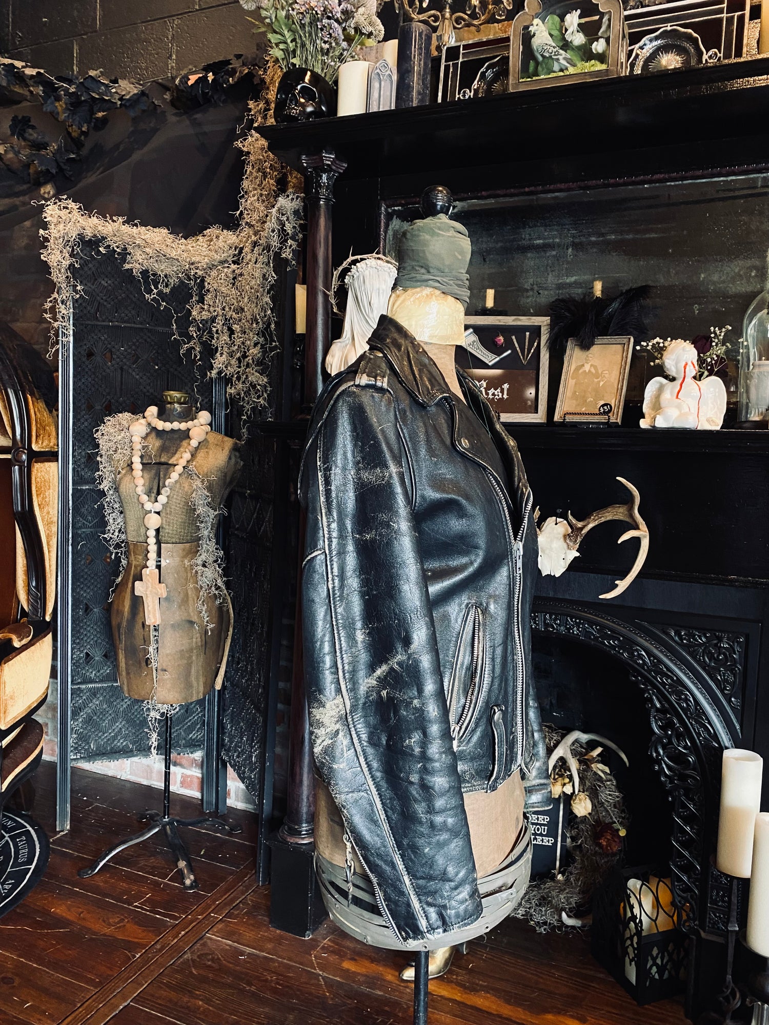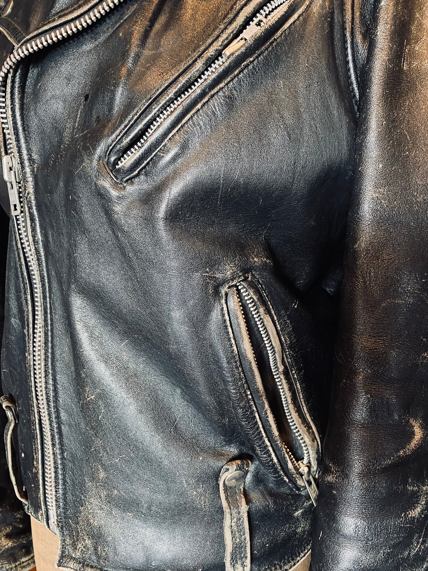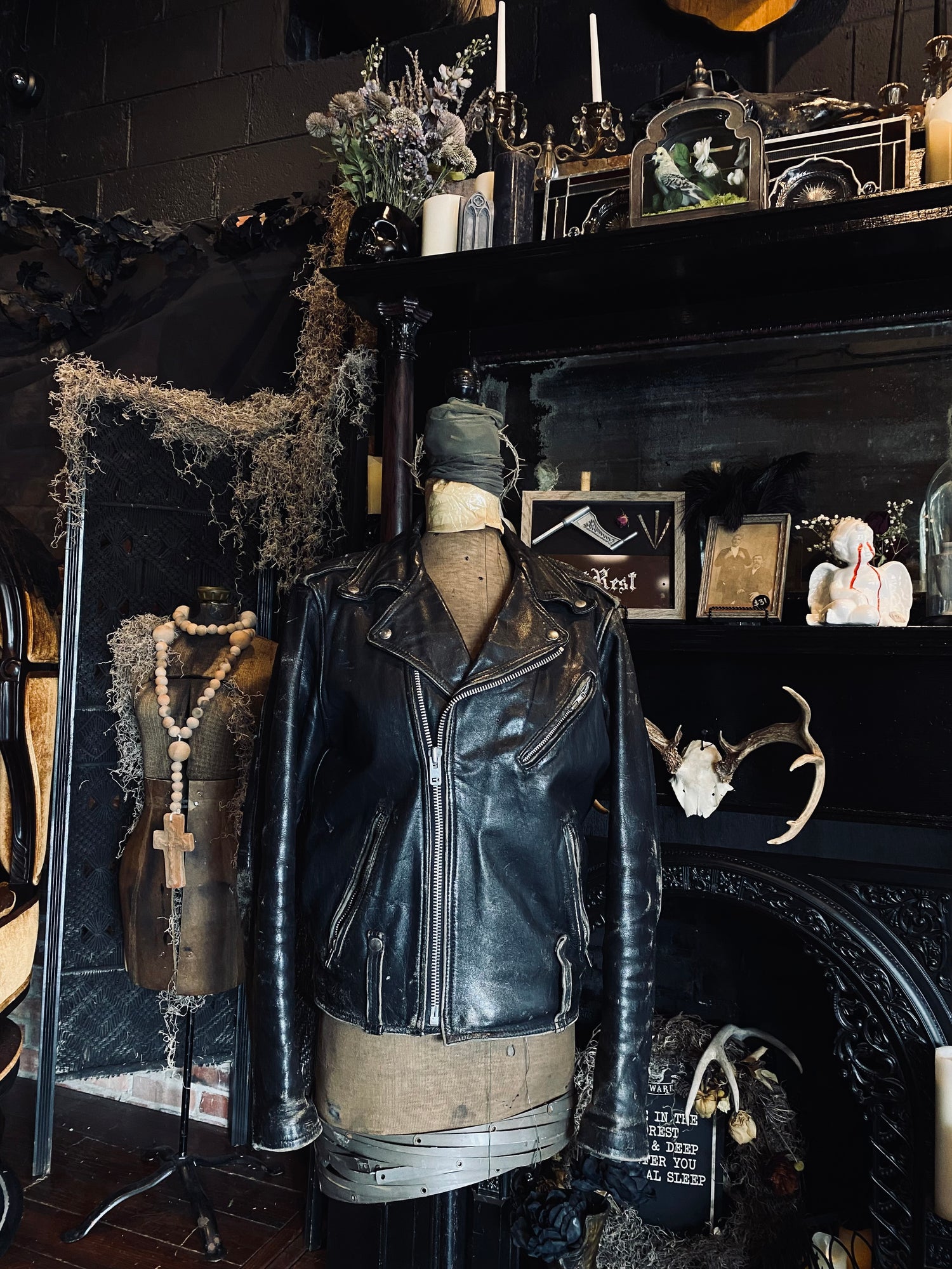 Who doesn’t love perfectly aged secondhand genuine leather? With the sturdiness of a jacket built to last and pass on to the next, and a badass bit of biker style, this jacket goes hard as hell.